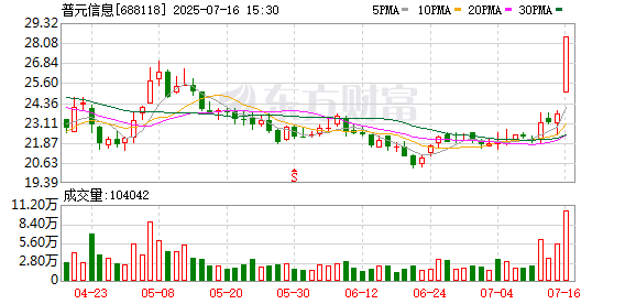 7月16日普元信息(688118)收盘价28.43元,收盘涨停,全天换手率11.33%,振幅13.72%,成交额2.84亿元。科创板交易公开信息显示,当日该股因日收盘价涨幅达15%等上榜。